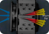 The patented Pressure Differential Flow (PDF) Design pushes the air through a conical channel, improving the air flow and increasing the cooling performance by up to 15%.