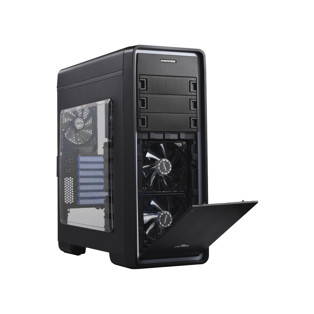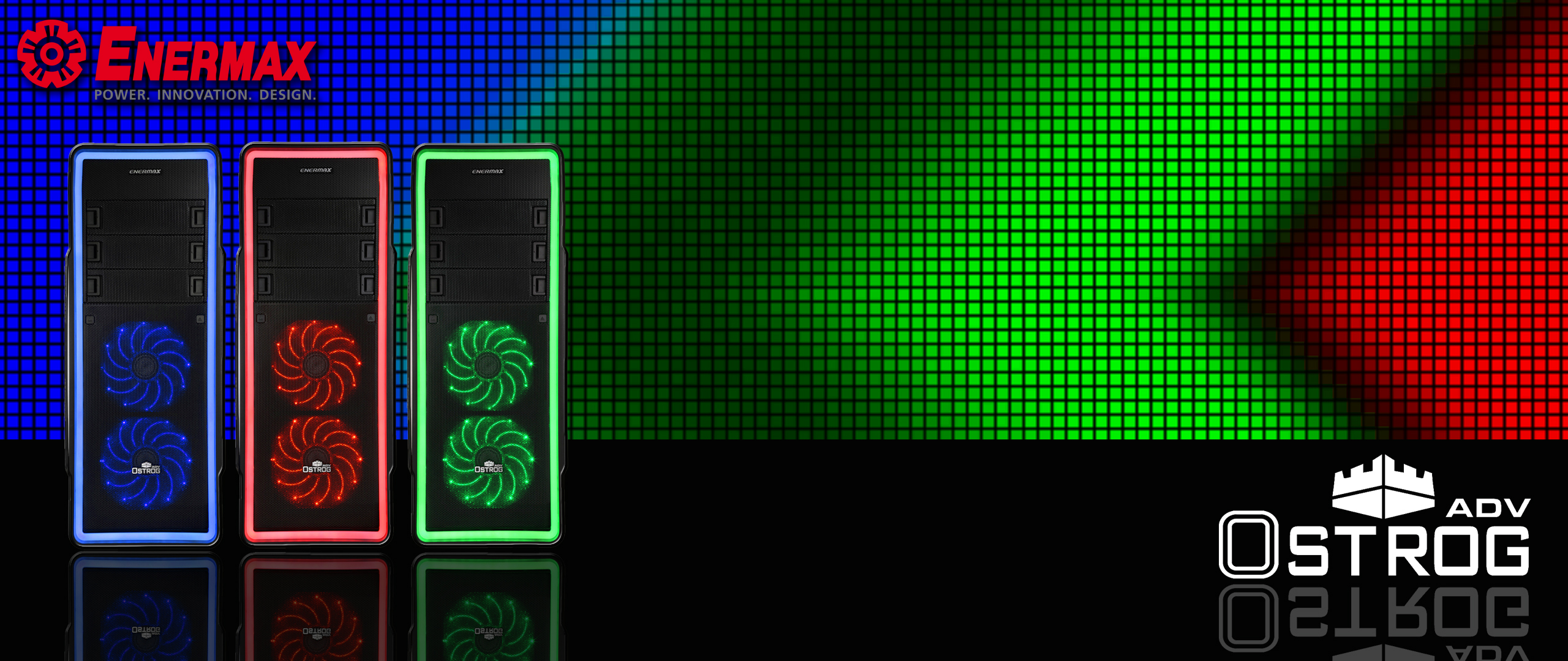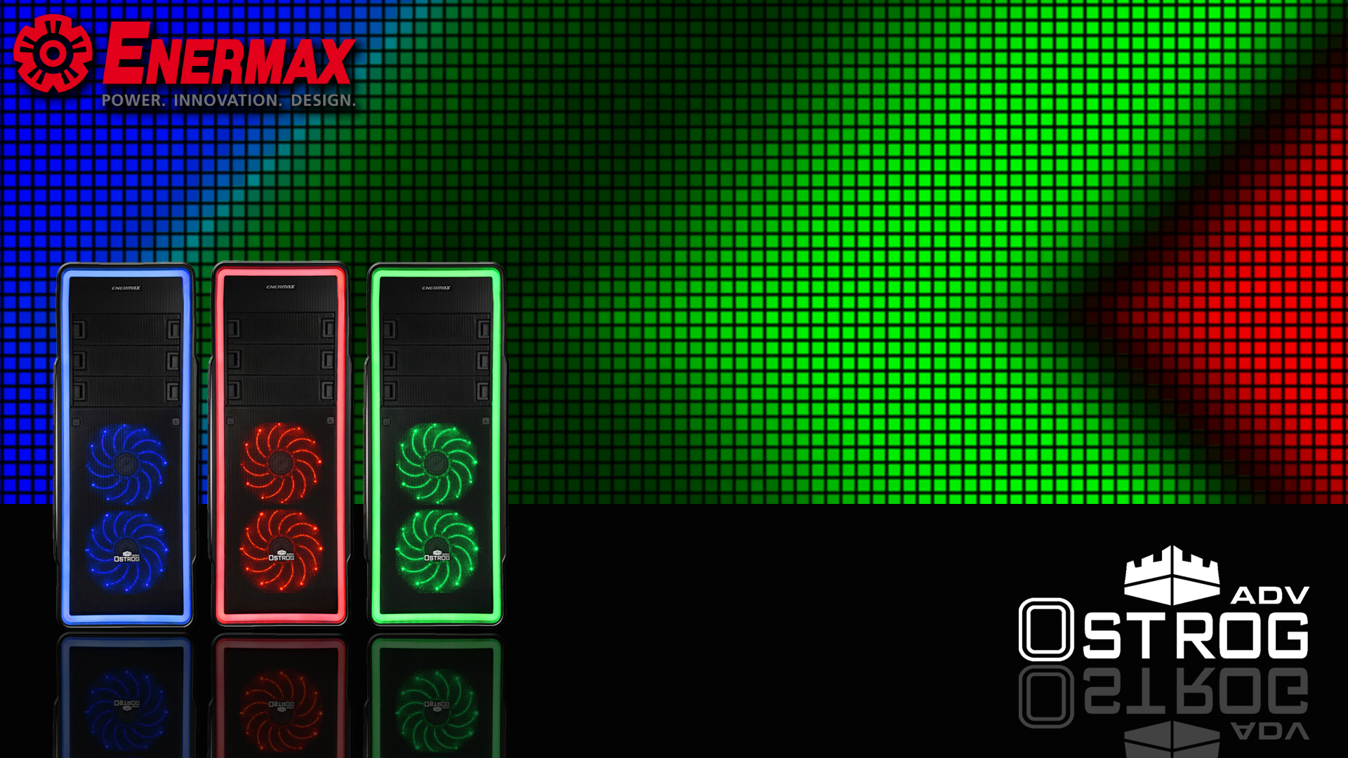 Featured with patented MaxBrite™ LED technology Ostrog ADV provides excellent illumination in red, blue or green. Due to MaxBrite™ LED technology all LED stripes covering the case are illuminated without distortion. Combined with the perfectly synchronized and pre-installed Enermax Vegas fans the lightshow of Ostrog ADV is made perfect.